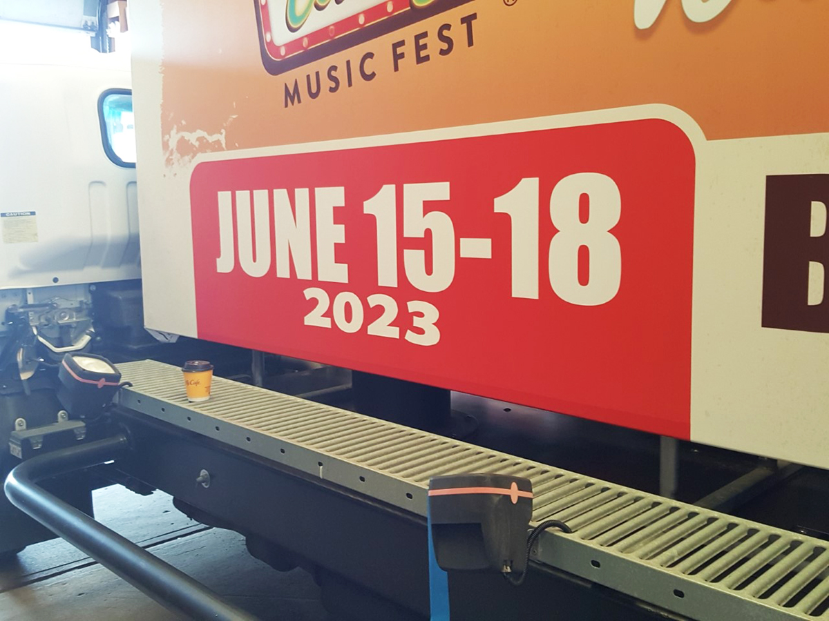 NOTE: 08/25/22 As discussed and agreed upon with Chasity Todd on 8/23/22, we planned to add “2023” to the banner with vinyl numbers. Please see photo sample below, taken today. The truck is scheduled to run tomorrow and Saturday.