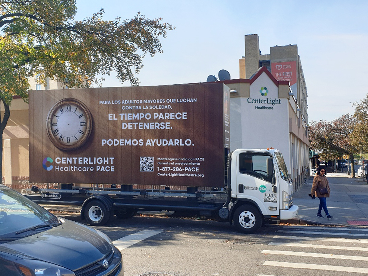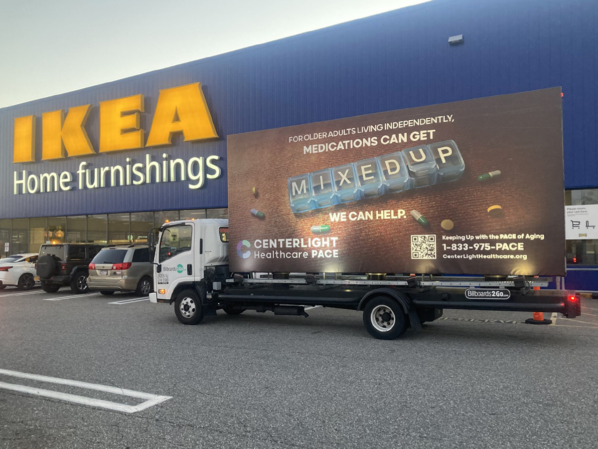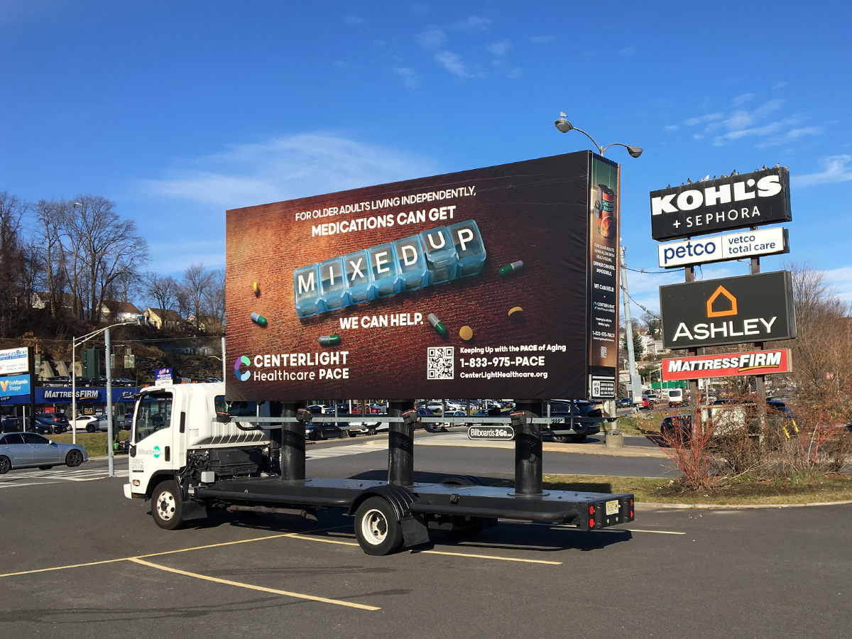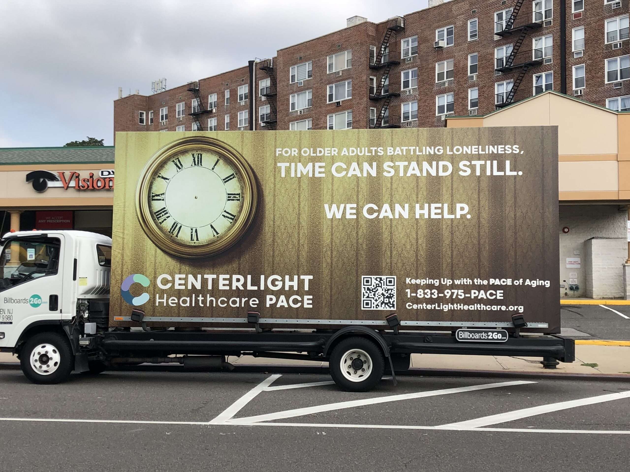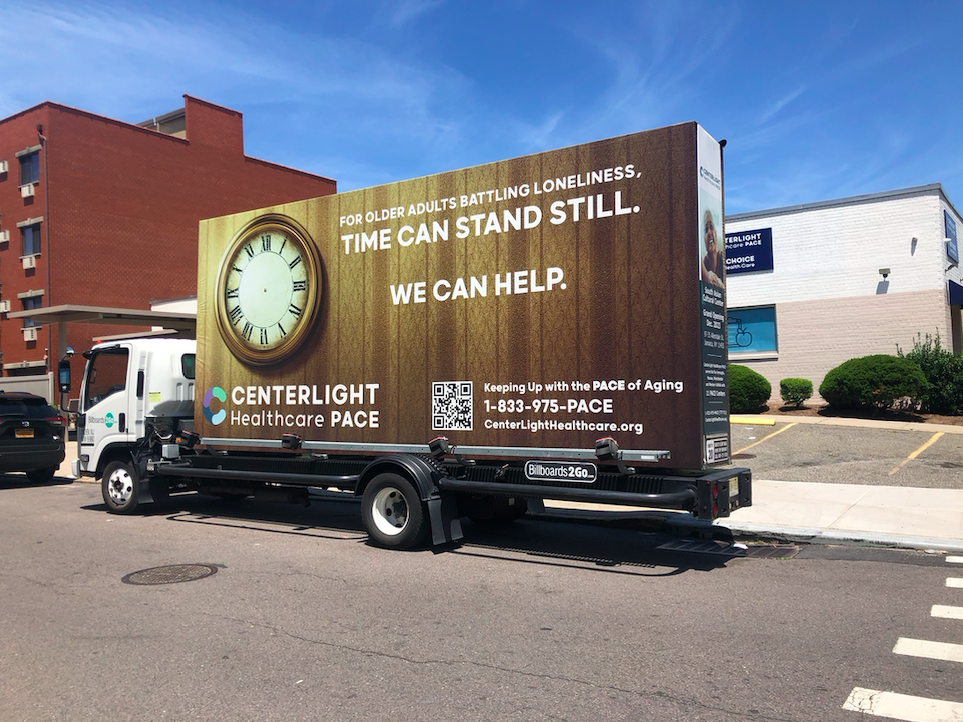 NOTE: 04/29/24 The CenterLight healthcare mobile billboard campaign is going smoothly! The weather has been favorable, and the new billboard unit is running beautifully. We’re on track to complete the first phase of the campaign extension tomorrow, and we’ll begin the second 86-day extension the following day, Wednesday, May 1st. We’ve also moved the parking of this unit from the Bronx to a more strategic location in Long Island. This shift allows us to spend more time in our target markets and less time commuting, further enhancing our services in the mobile billboard category. We’d like to take this opportunity to thank Ann Healey and the entire team at CenterLight Healthcare for choosing Billboards2Go to represent their media needs.
