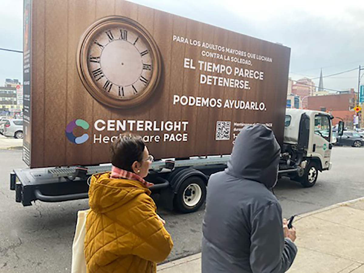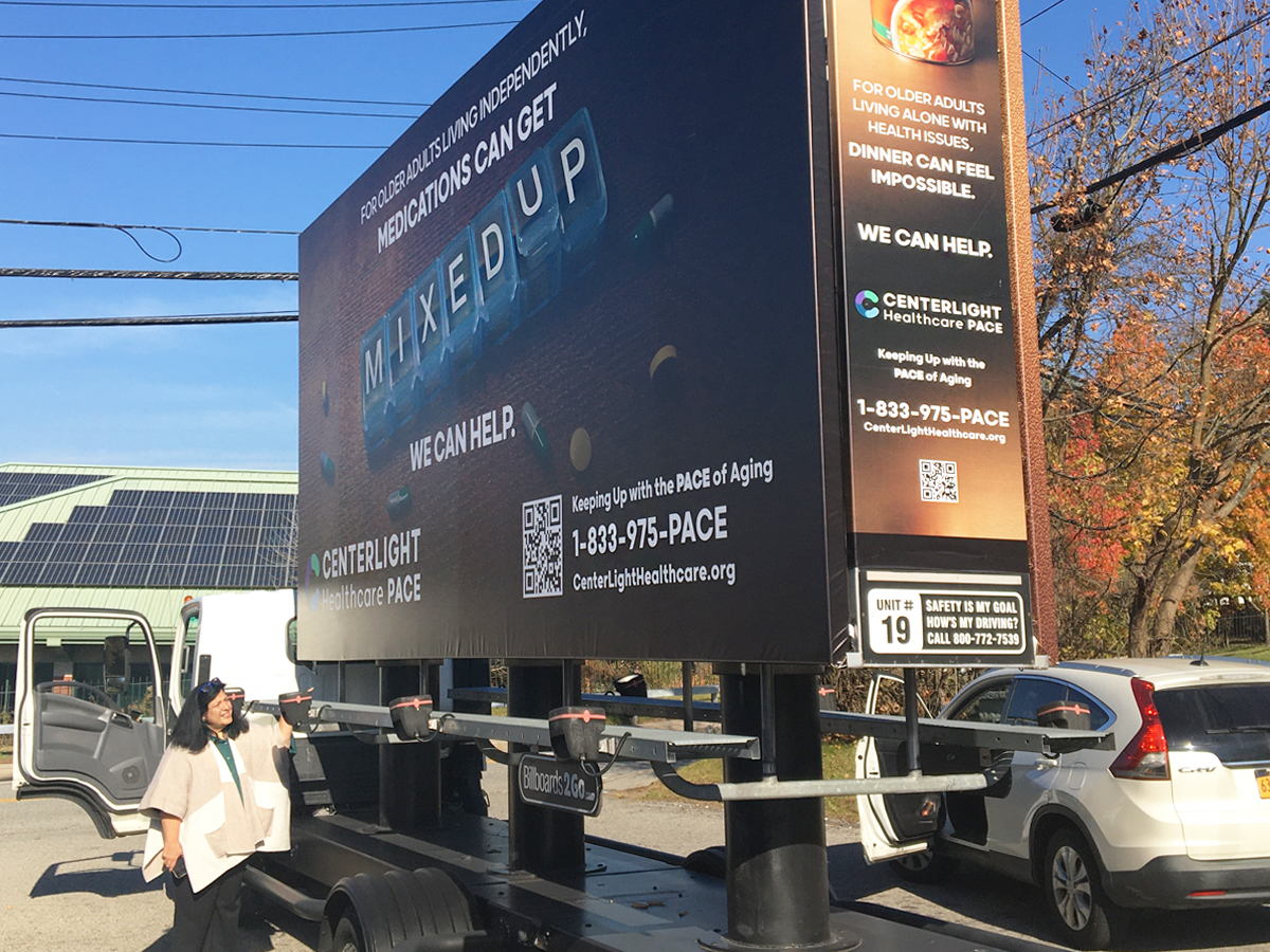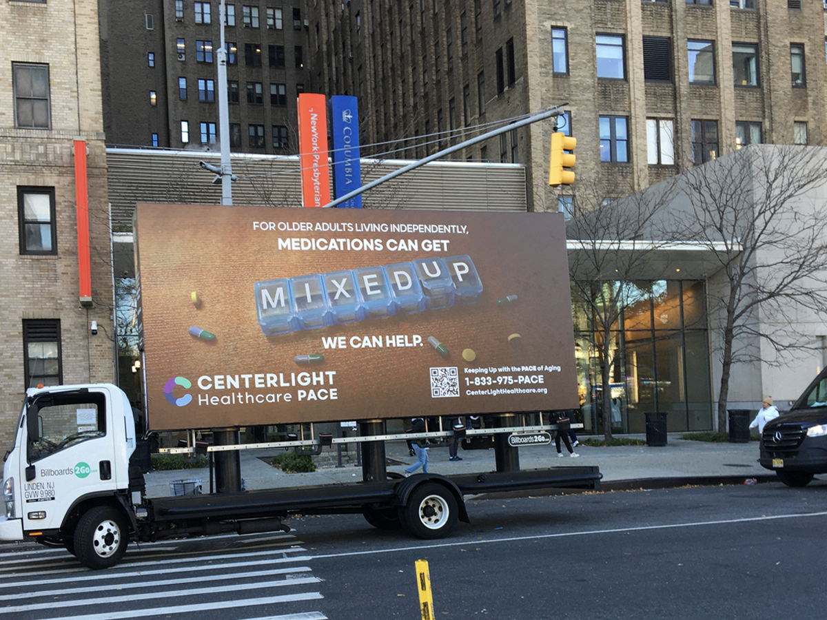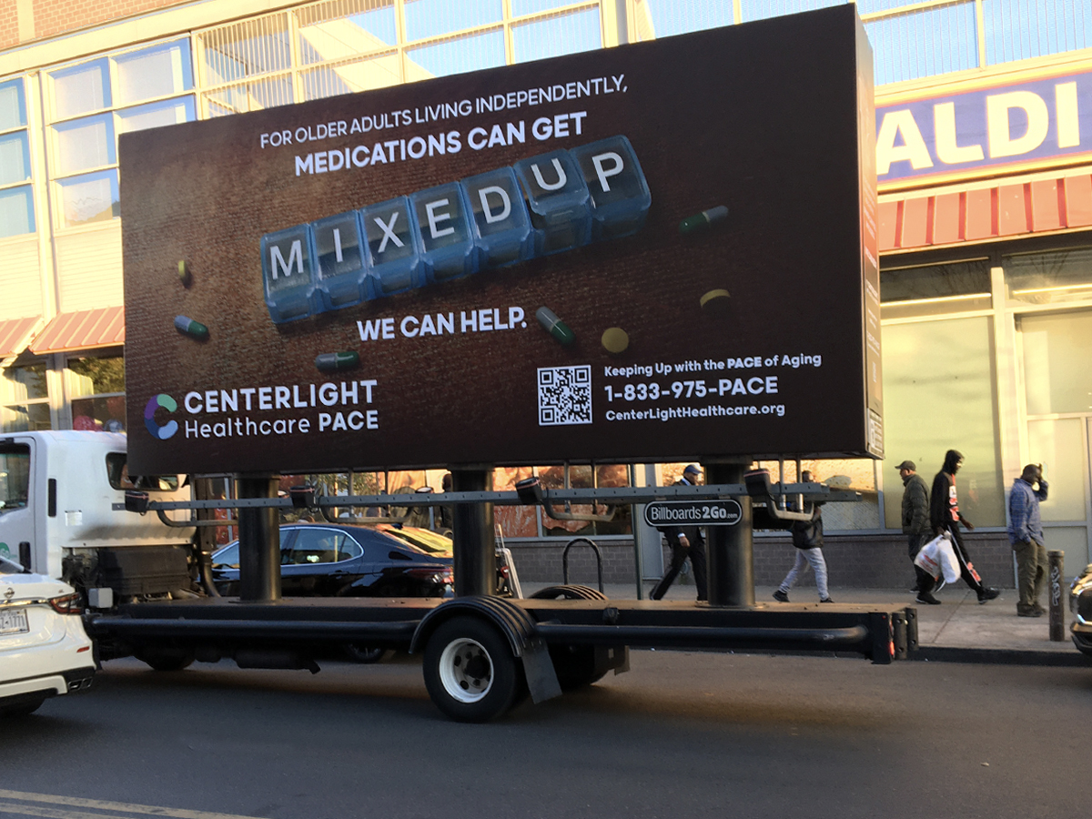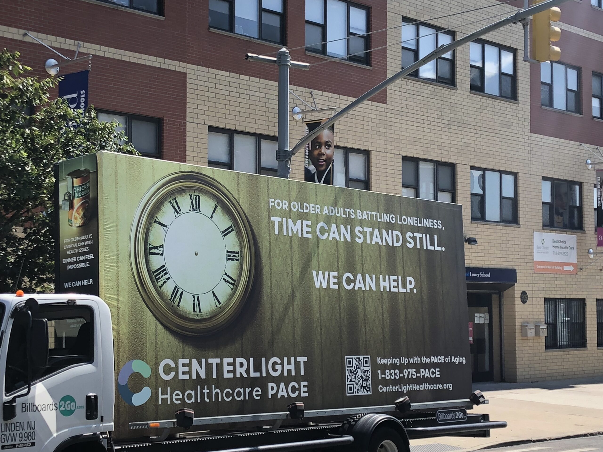 NOTE: 04/29/24 The CenterLight healthcare mobile billboard campaign is going smoothly! The weather has been favorable, and the new billboard unit is running beautifully. We’re on track to complete the first phase of the campaign extension tomorrow, and we’ll begin the second 86-day extension the following day, Wednesday, May 1st. We’ve also moved the parking of this unit from the Bronx to a more strategic location in Long Island. This shift allows us to spend more time in our target markets and less time commuting, further enhancing our services in the mobile billboard category. We’d like to take this opportunity to thank Ann Healey and the entire team at CenterLight Healthcare for choosing Billboards2Go to represent their media needs.