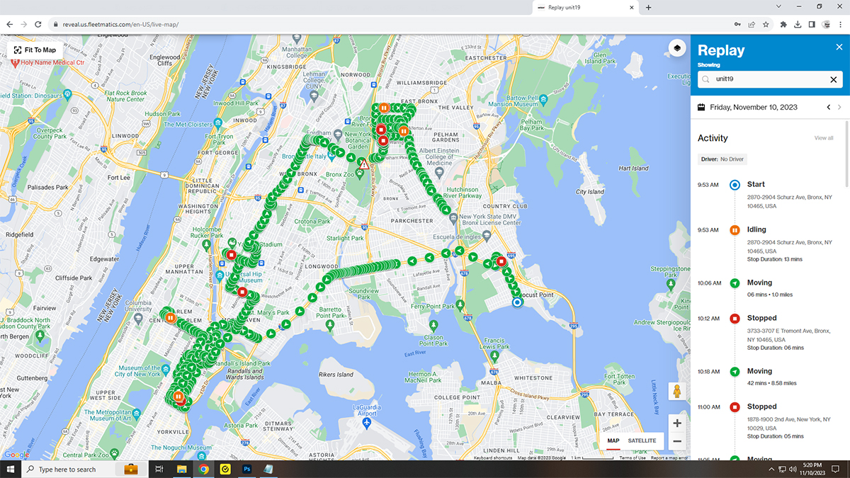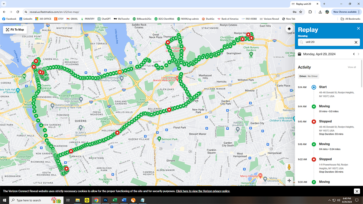 NOTE: 11/07/23 The Centerlight Healthcare mobile billboard campaign is operating smoothly. The photos provided below were taken earlier today. One shows the driver handing out Centerlight marketing materials. Additionally, we have included a screenshot of the GPS tracking, which displays the route the billboard unit has taken up until the time of the screenshot, approximately at 4:15 pm on Tuesday afternoon, showing the unit’s location in Queens.