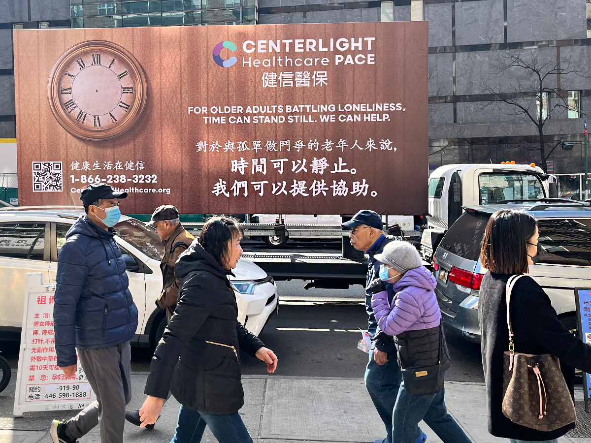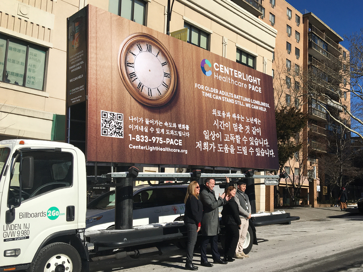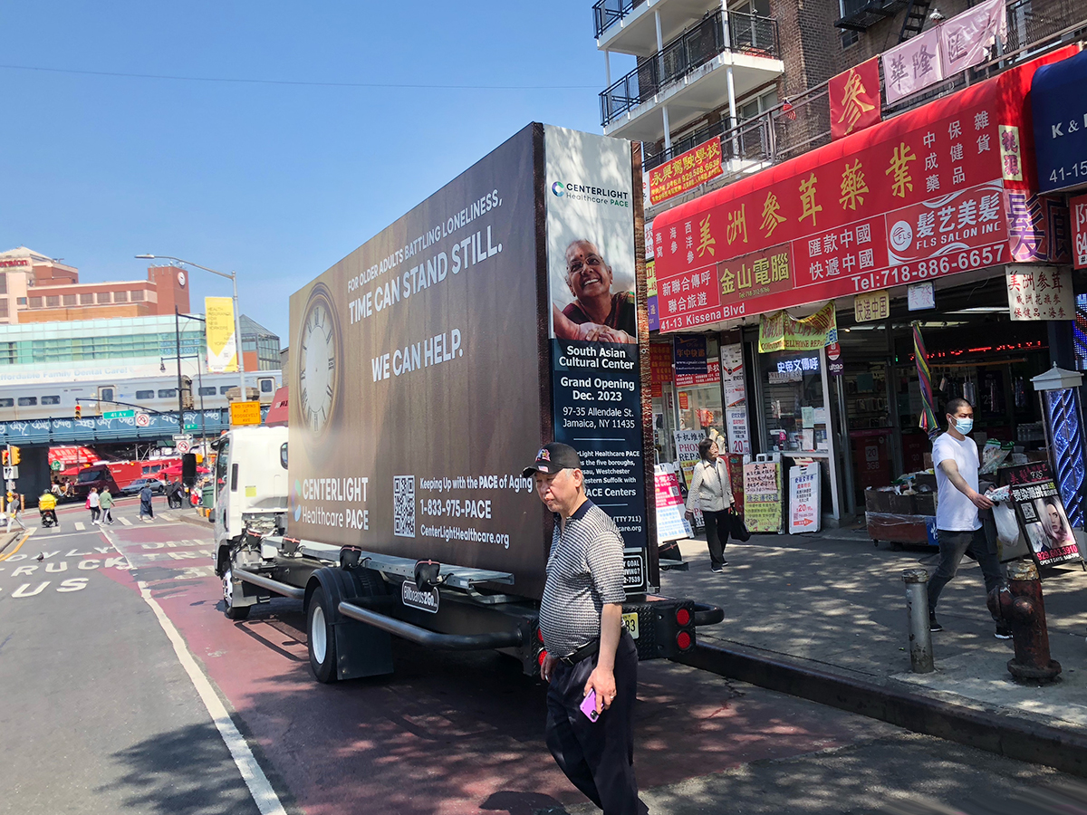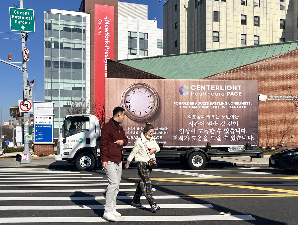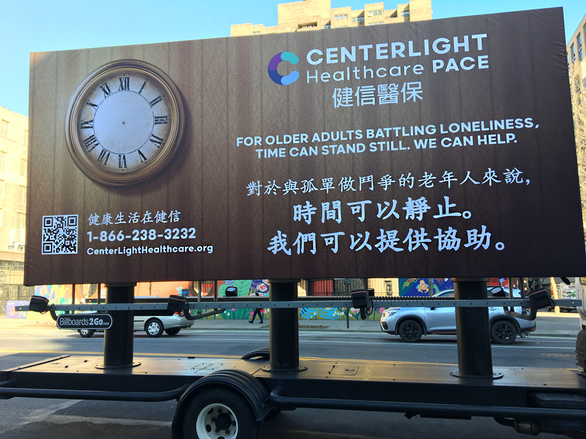 NOTE: 02/09/24 Exciting news! Billboards 2Go successfully met the tight production deadline for yesterday’s event in Manhattan’s Chinatown. While the billboard driver didn’t capture many photos, he mentioned that there were plenty of CenterLight Healthcare staff present who may have taken more. We’ll aim to include additional photos from the event soon. In the meantime, please find a photo below showcasing the Chinese side of the billboard unit. Also, we’re currently working on creating a detailed route schedule, which we hope to have ready as a printable PDF file by the end of day. As for today, The Chinese/Korean billboard unit is currently getting exposure in the Flushing Queens market, and the 2nd unit is in downtown Manhattan.