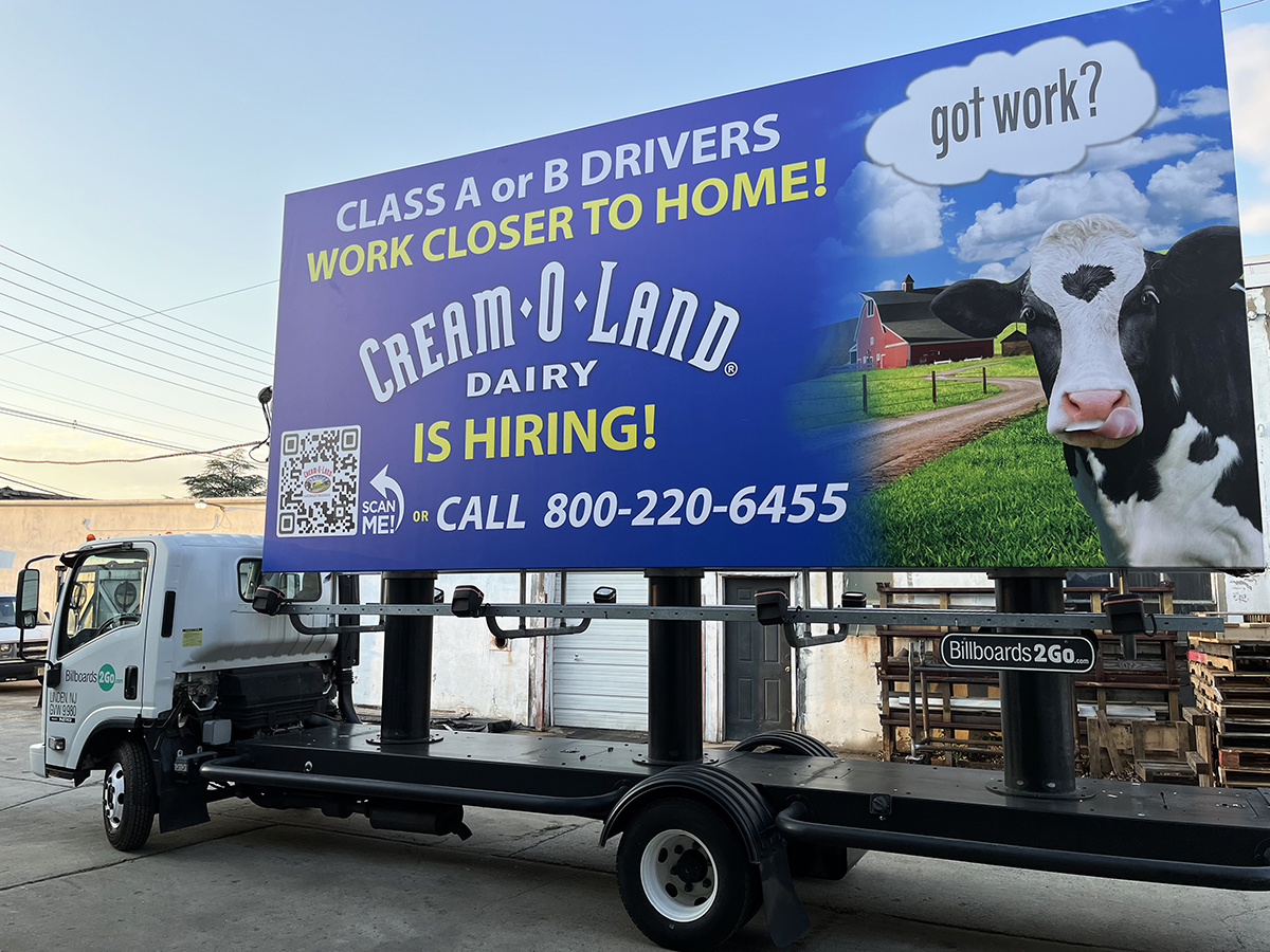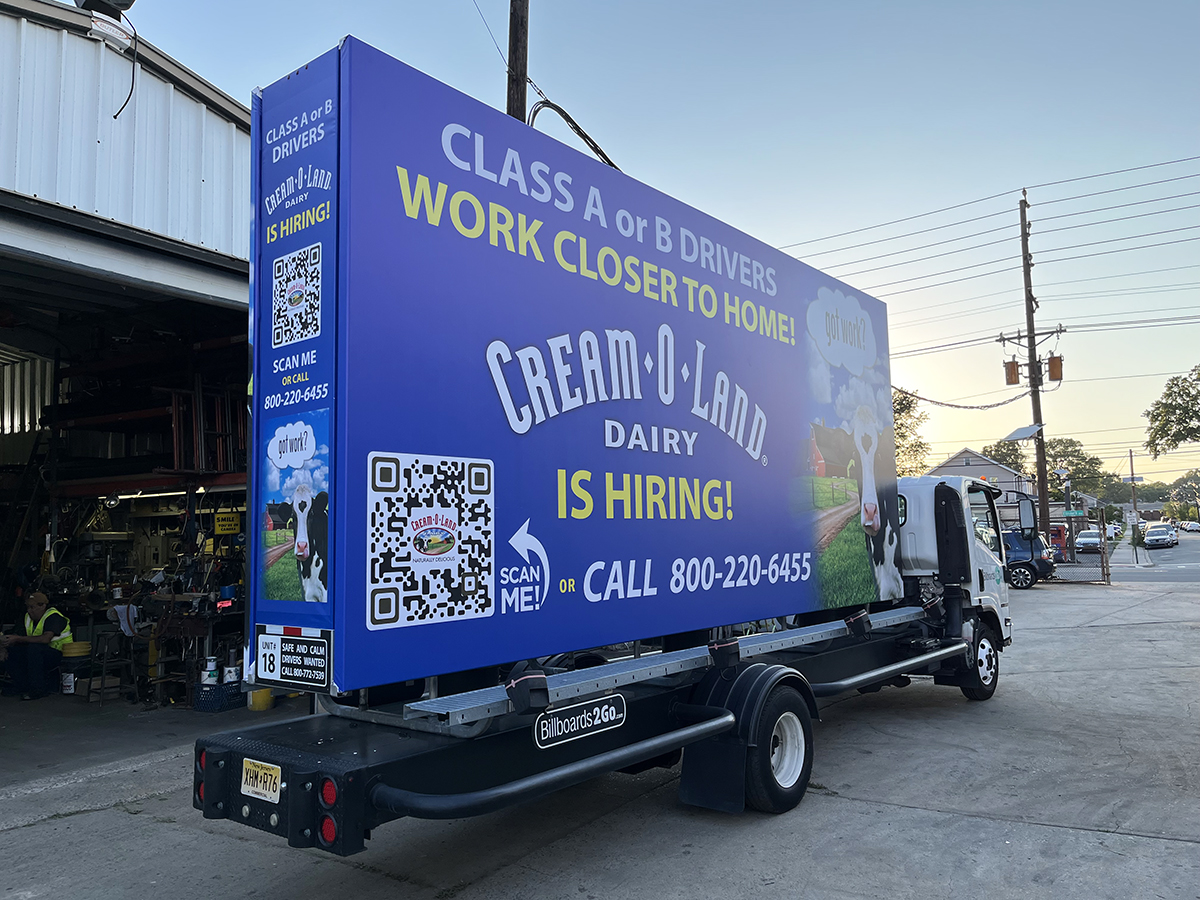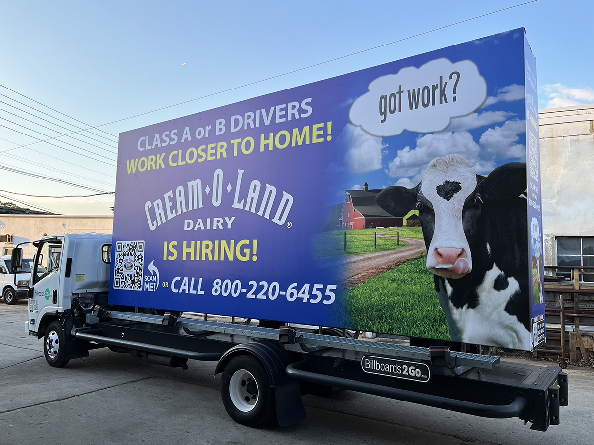 NOTE: 07/22/2022 The CREAM-O-LAND mobile billboard will not run today. The scheduled driver called in with a personal issue at the last minute. This day will be made up at the end of the campaign. Sorry for any inconvenience.