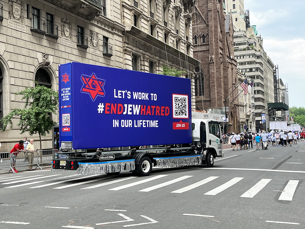 NOTE: 05/23/22 The (5) JCRC mobile billboard parade units arrived on schedule and performed flawlessly at the event. Photos were taken of the billboard units and will be posted below later on today. Please share the photos with your colleagues and clients. To save, just click on a photo to enlarge and right click to save to your computer. Thanks again for having Billboards 2Go represent your clients in this year’s Celebrate Israel parade. we look forward to being of service next year!