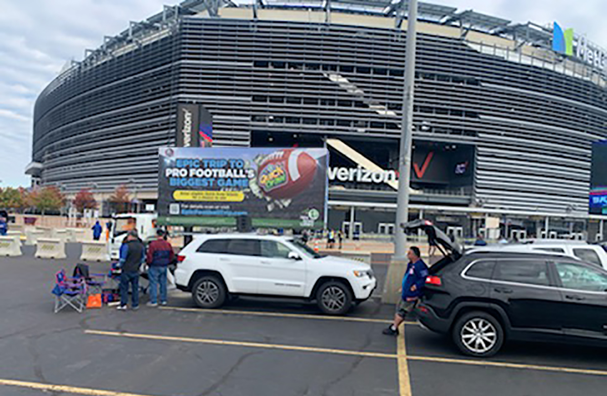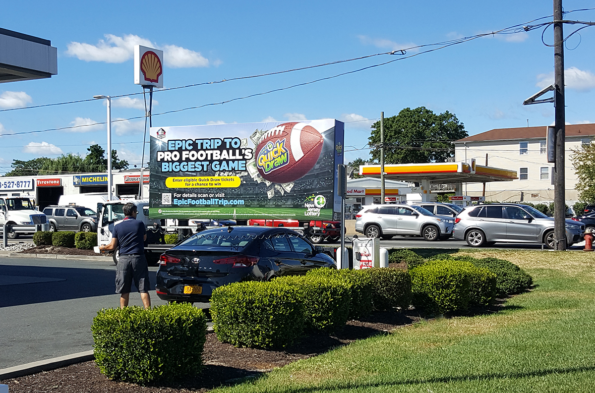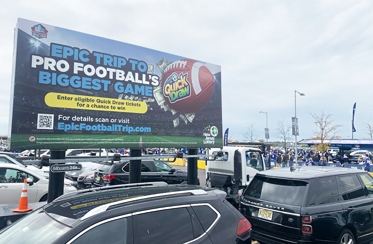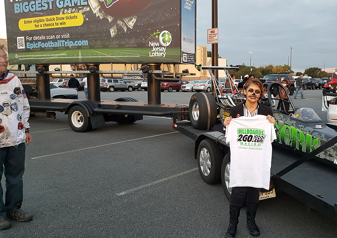 NOTE: 10/12/21 As Added Value, Andrew Miller took the Quick Draw Football NJ Lottery mobile billboard to the Linden NJ Car Show (Airport Plaza Mall) on its scheduled day off, Monday 10/11/21. The photos below show the Billboards 2Go company racecar displayed next to the mobile billboard. They were both a big hit at the show.