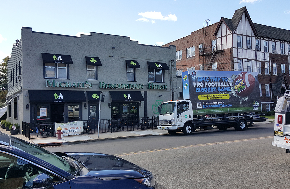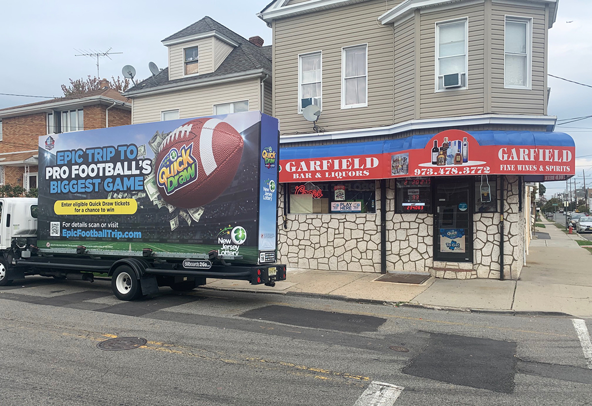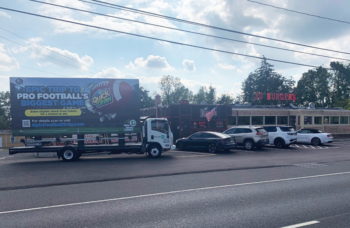 NOTE: 09/29/21 The Quick Draw Football NJ Lottery mobile billboard campaign launched on schedule this morning. The driver is concentrating on exposure in front and around Quick Draw vendors locations and major traffic areas.