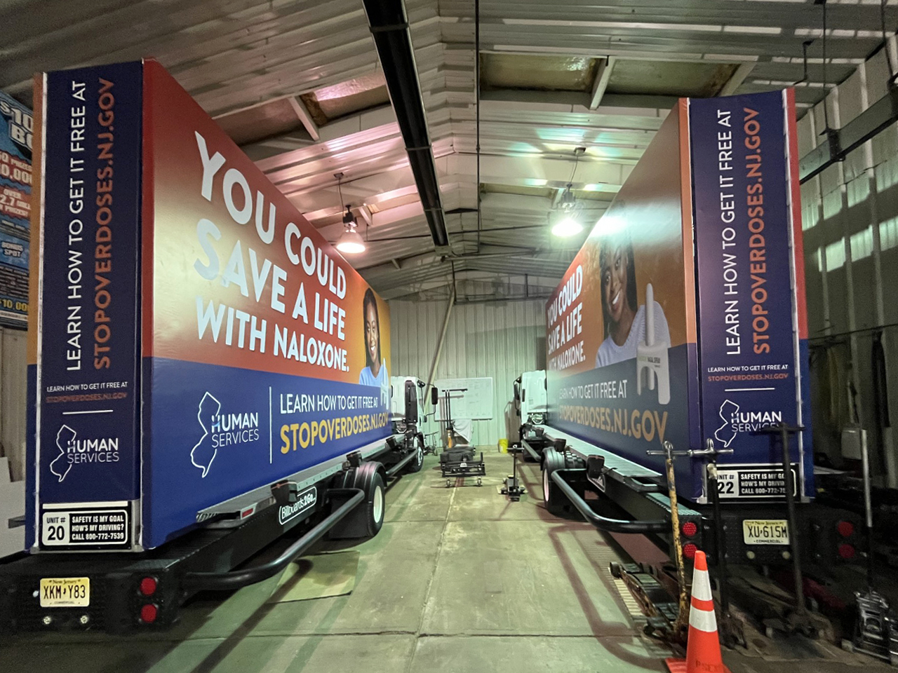 NOTE: 02/26/24 Despite our efforts over the weekend to meet today’s launch date, we regret to inform you that we are unable to commence as planned. There are still a few remaining tasks to address today in order to ensure the Naloxone campaign begins successfully. As far as we see, tomorrow Feb 27th, will be the official start date. We apologize for any inconvenience this delay may cause. The photo below shows the billboards being prepared at the Linden NJ shop.