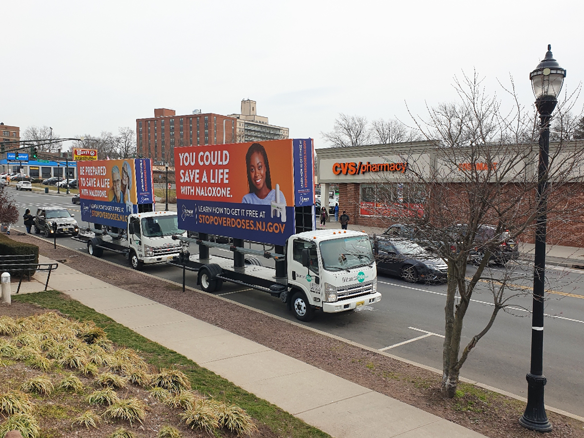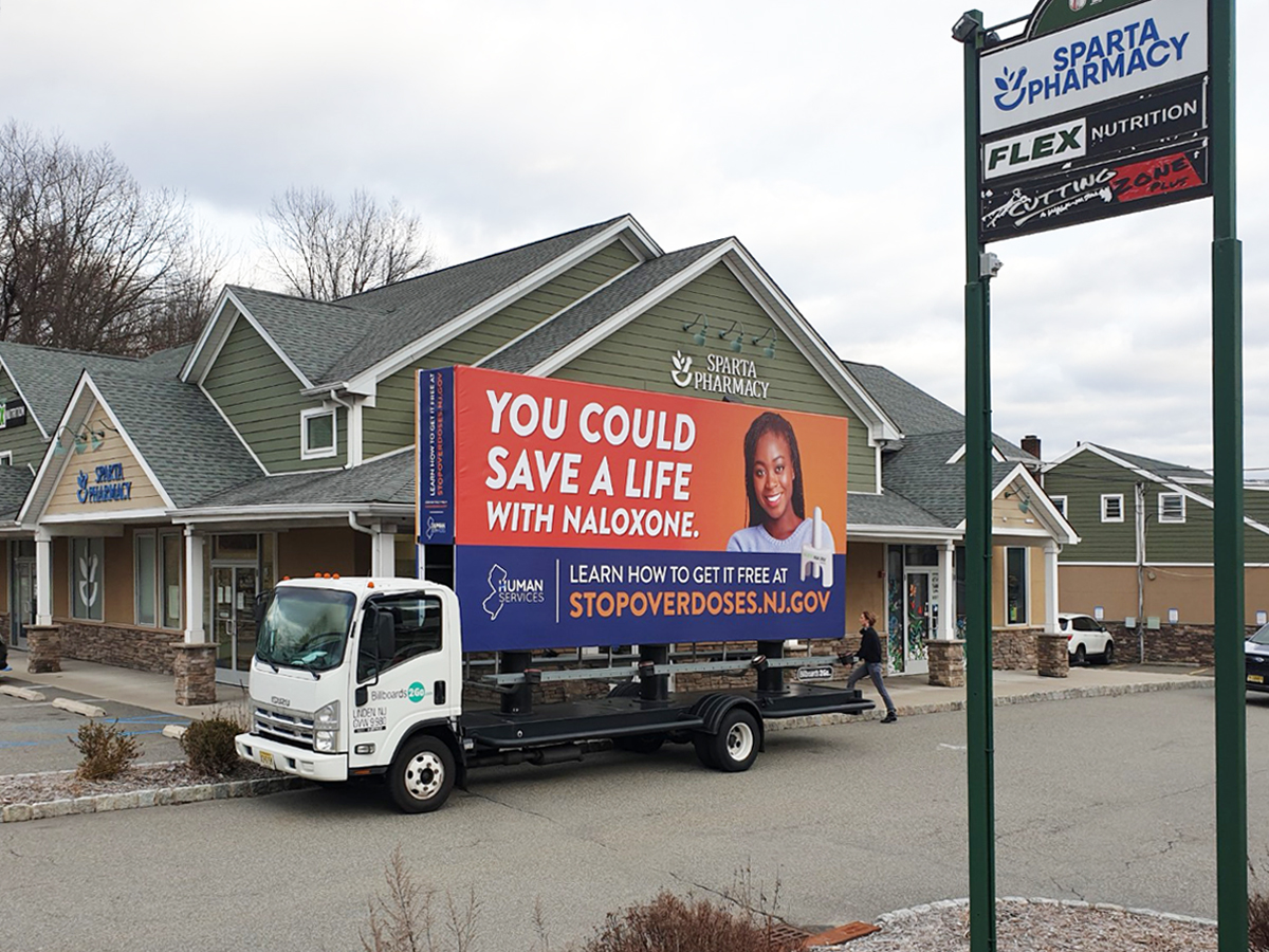 NOTE: 03/11/24 Due to strong winds and truck restrictions on bridges and highways leading to Atlantic City, we’ve had to postpone today’s mobile billboard campaign for one of the Naloxone billboard units. However, our northern New Jersey truck is still operational and providing exposure in the Hudson County market. We plan to reschedule the missed day for the upcoming Saturdays. We apologize for any inconvenience this change may cause.