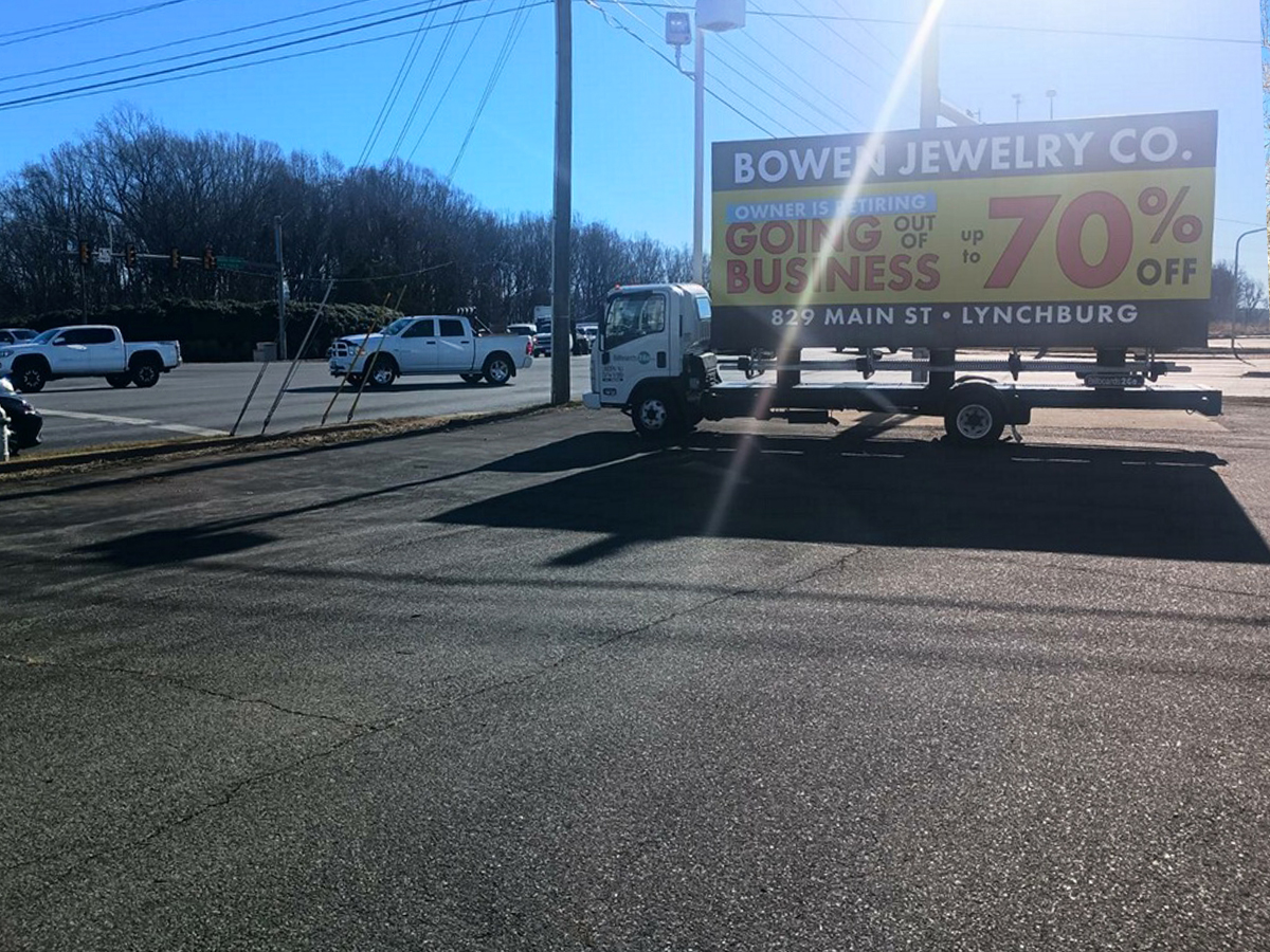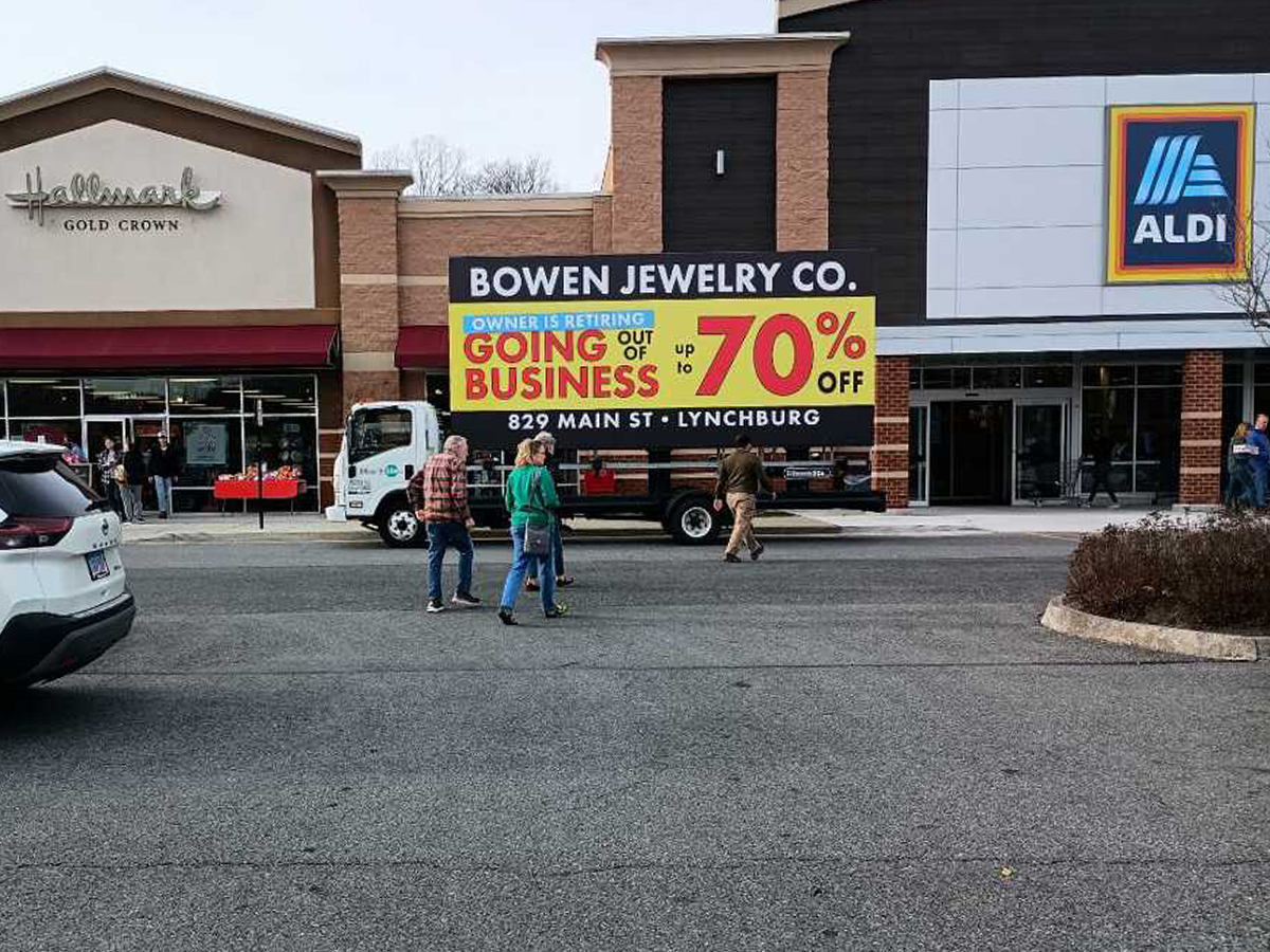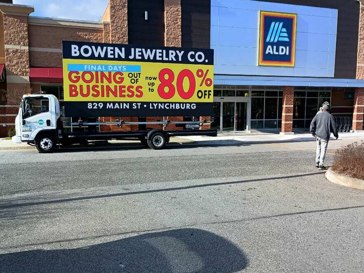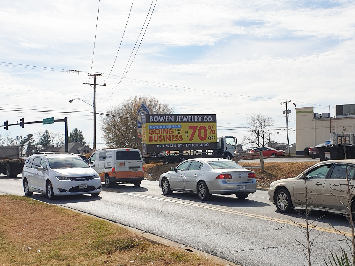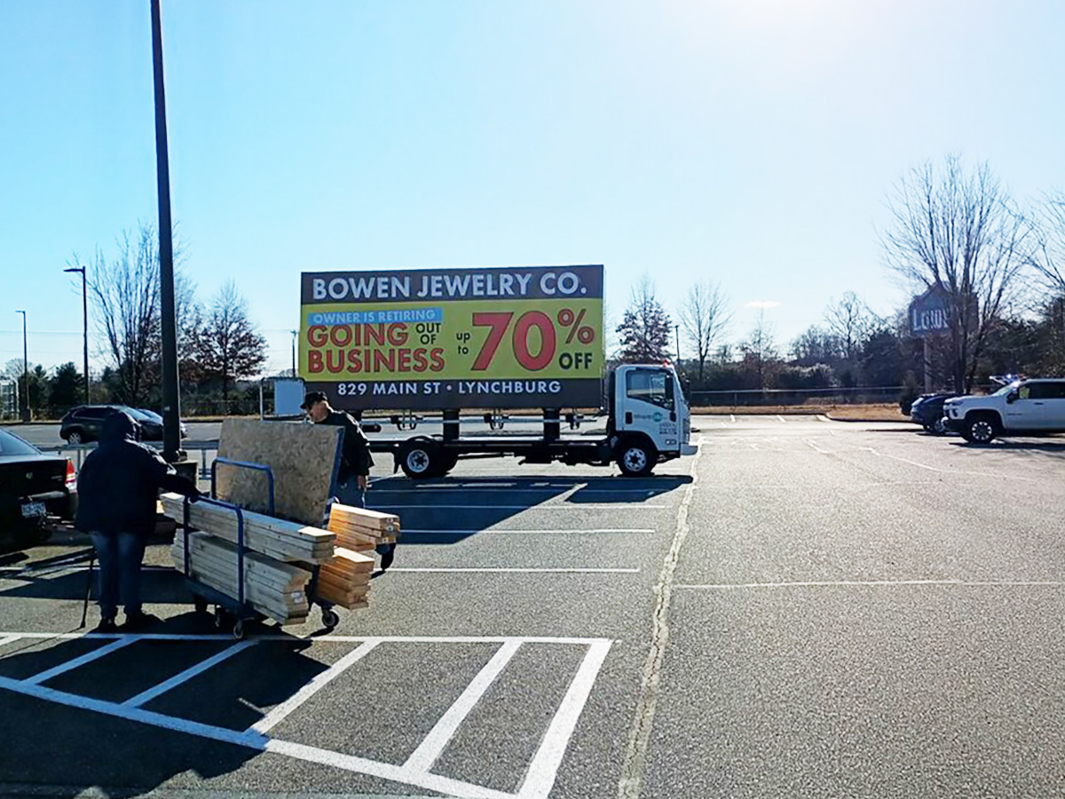 NOTE: 11/16/23 The photo below is just to show you what the client’s store in Lynchburg looks like. We’re excited to let you know that Billboards 2Go will launch the campaign next Monday on schedule. Right now, we don’t have photos of the billboard with the banners, but they’ll be posted in the local parking facility near Lynchburg this weekend. We were supplied a map that tells us where to focus for more visibility, and the driver will aim for prime spots in those areas. On the first day, the driver will stop by the store to meet Bill King, and we plan to make regular stops throughout the day for local exposure, every day. Once the billboard is up and we have some pictures, they’ll be posted on the client portal.