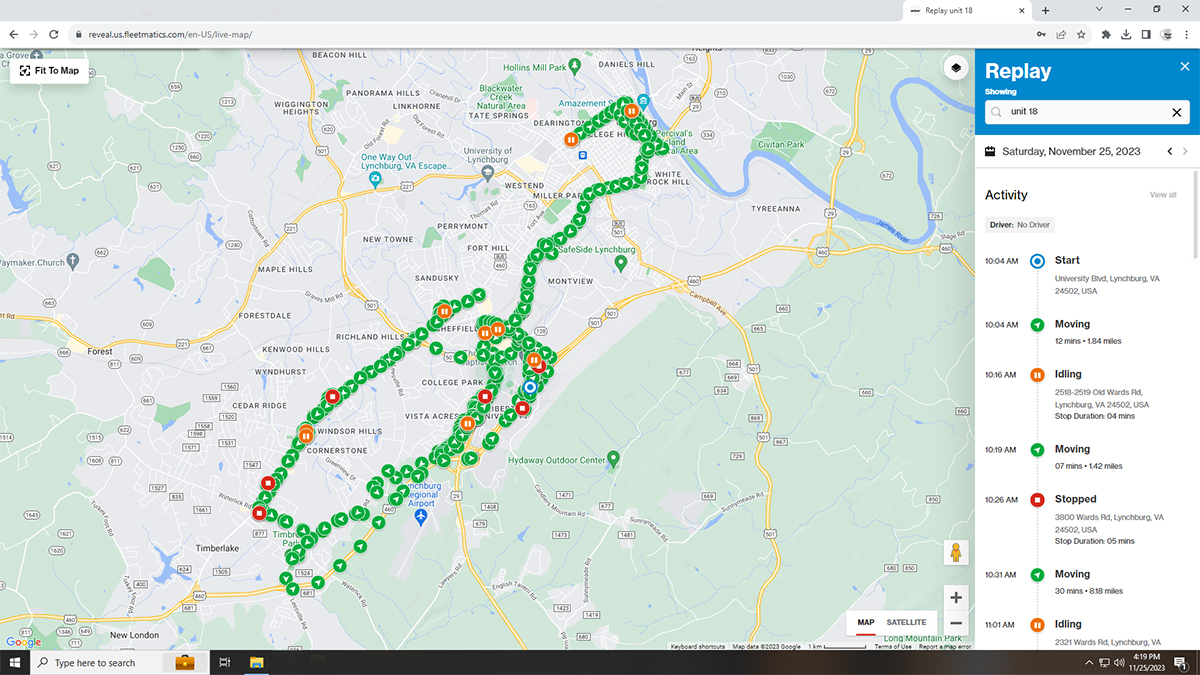NOTE: 11/25/23 The Bowen mobile billboard campaign is progressing well. The driver took the scheduled day off for Thanksgiving yesterday and has resumed driving today. He covered all the major shopping areas, as indicated in the attached screen capture below. The GPS tracking displays today’s route up to the time the image was taken, around 4:20 this afternoon.
