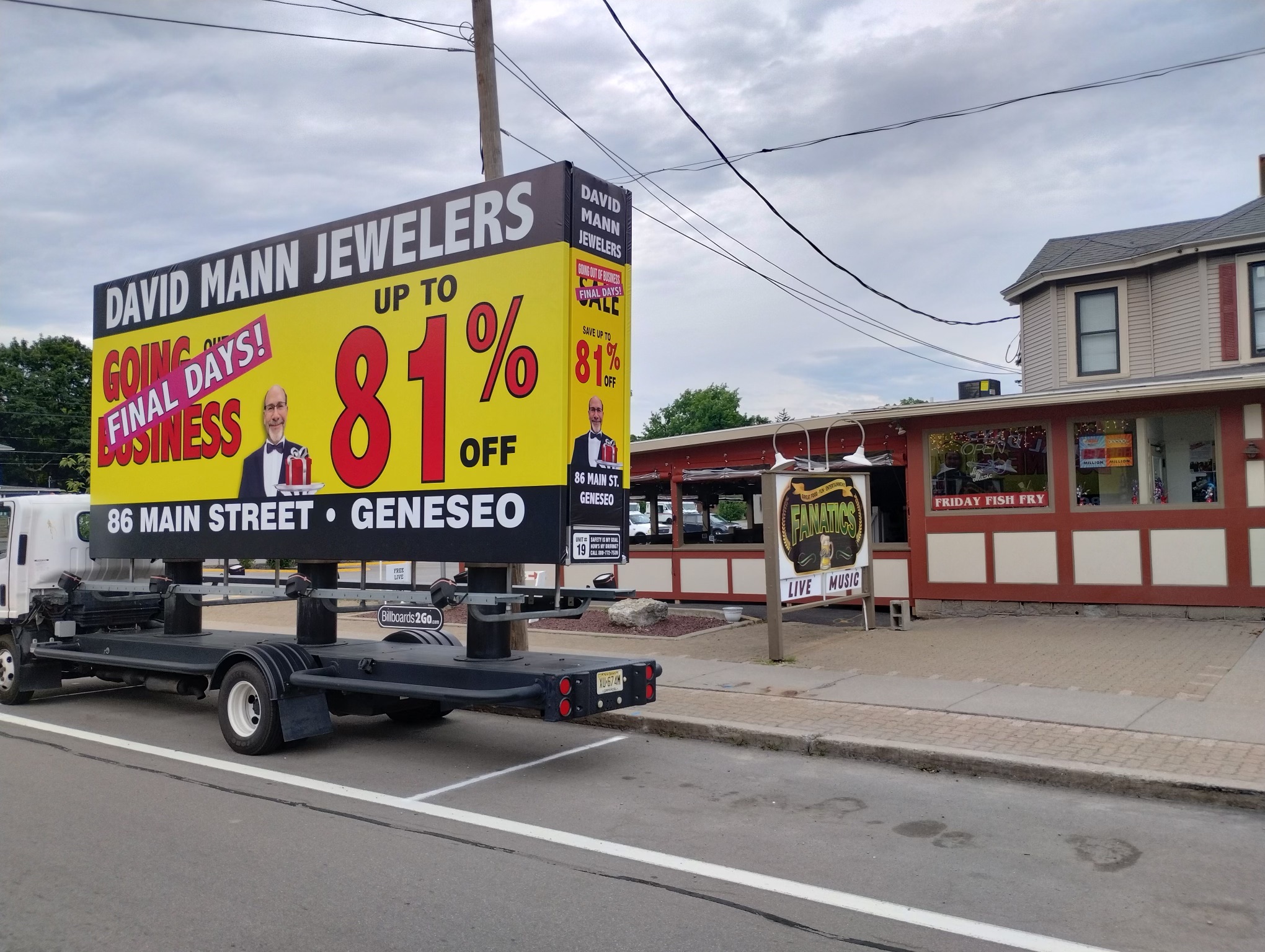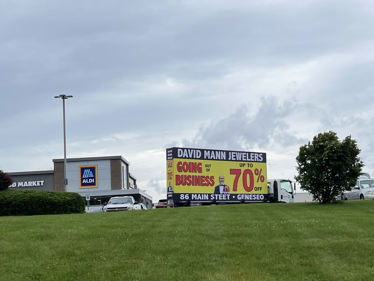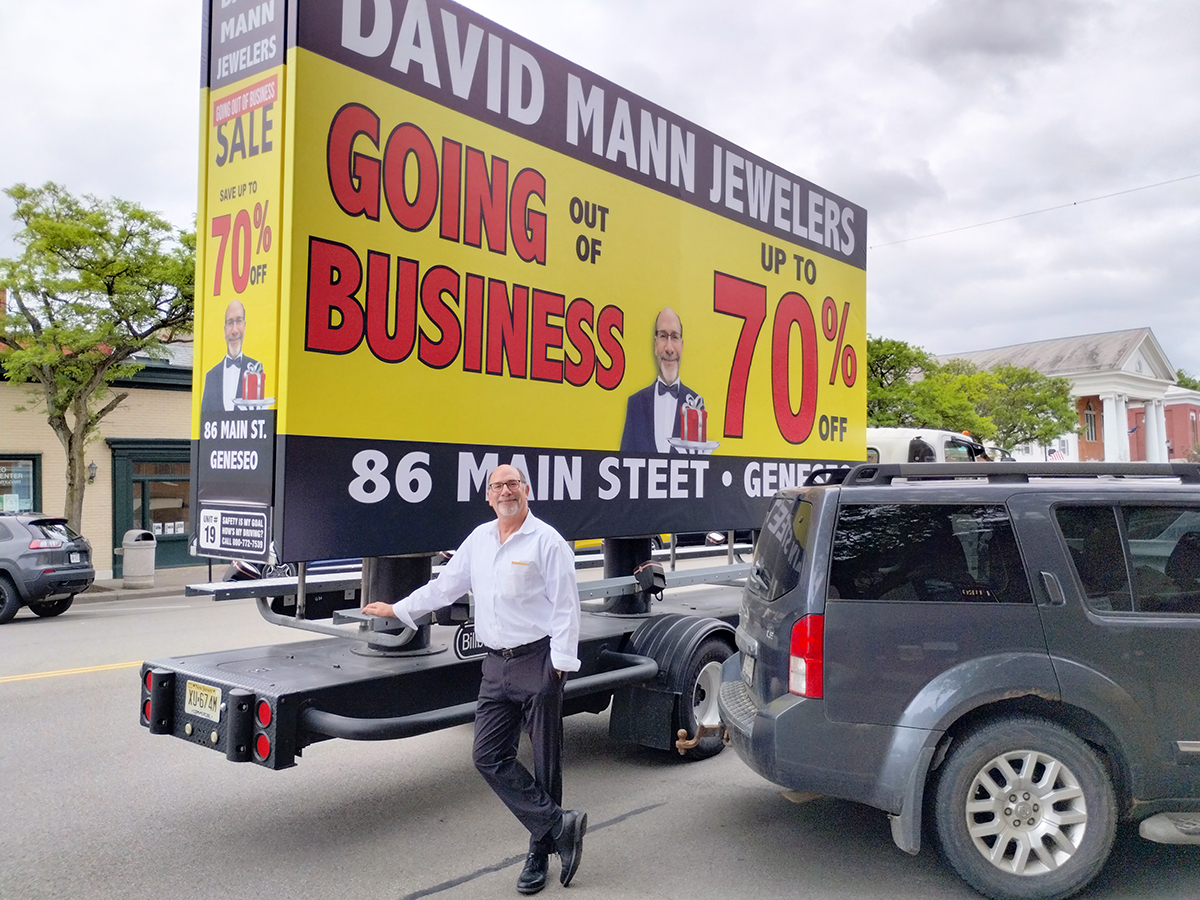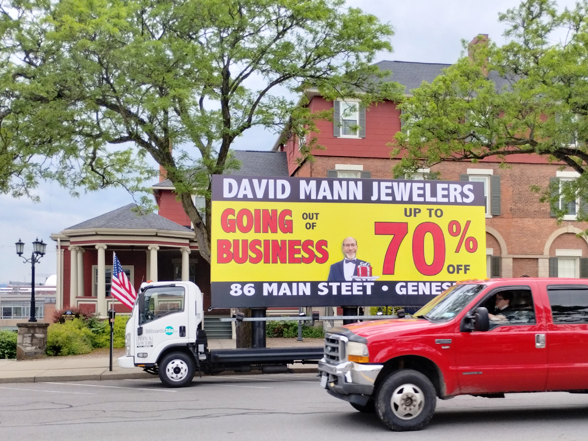NOTE: 05/28/24 The David Mann Jewelry Sale campaign kicked off right on time Memorial Day morning in the target market area. Russell met with Robert in Geneseo and introduced Kris, our dedicated billboard operator. Robert was really impressed with the display and looked forward to the Tuesday morning meeting, asking Kris to be at the store at 10:00 AM. – The GPS access for this campaign is the same as for the Cliffside Park campaign. At the Reveal site, you can track both campaigns using the same map tracking feature.