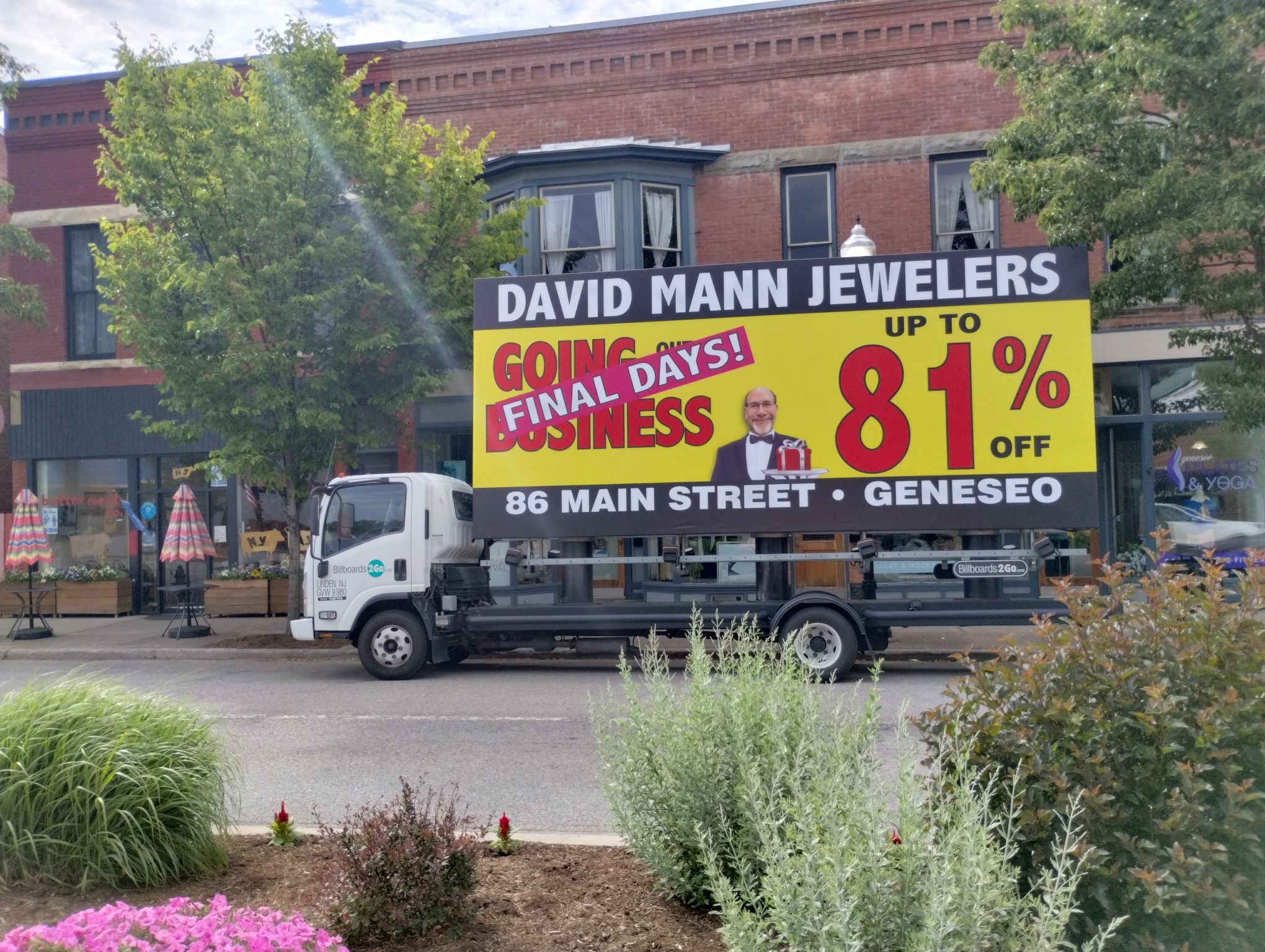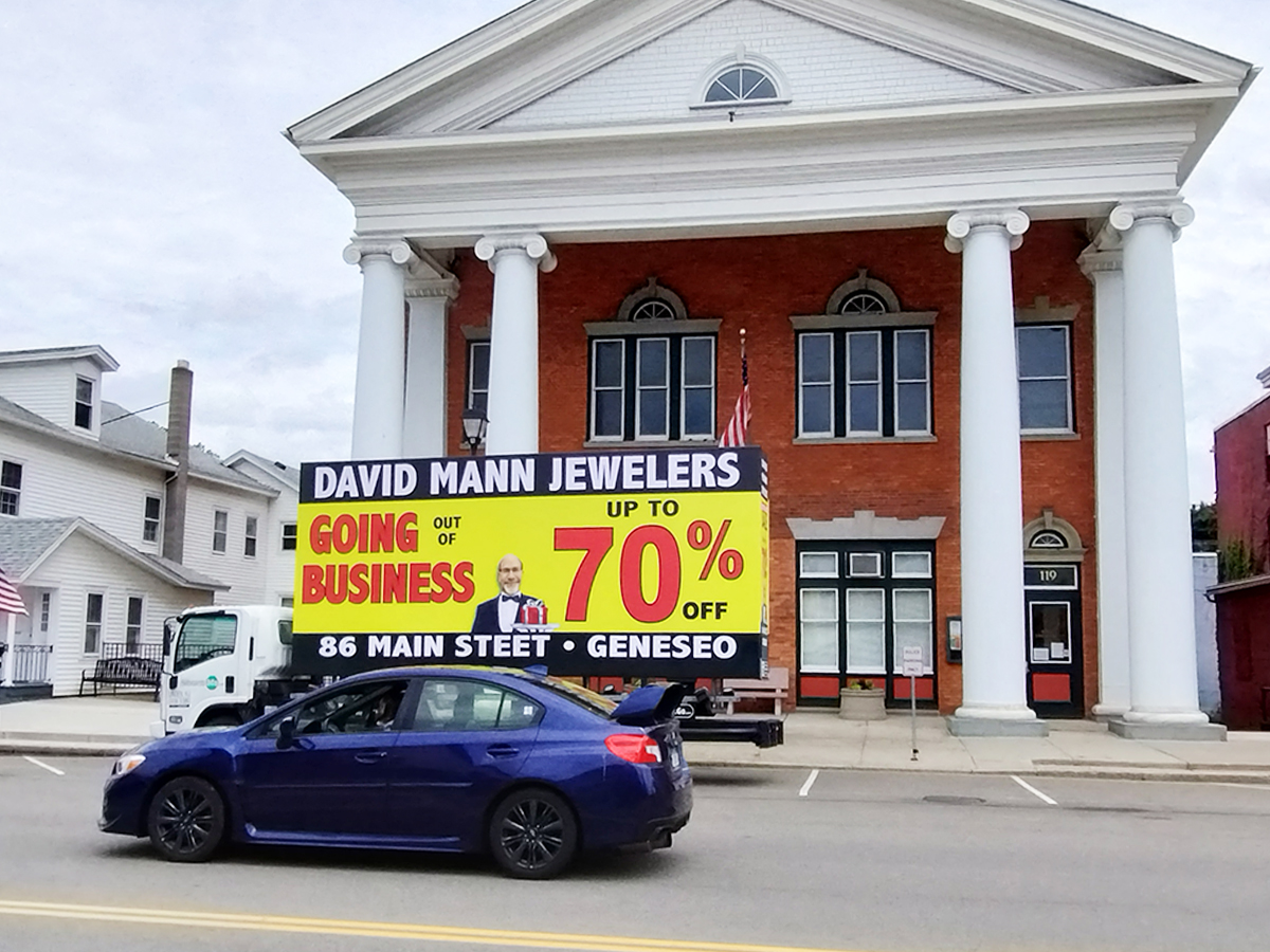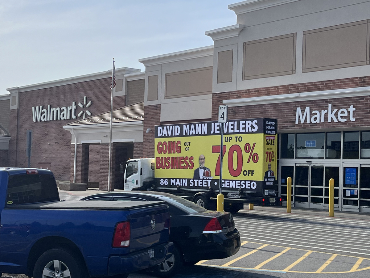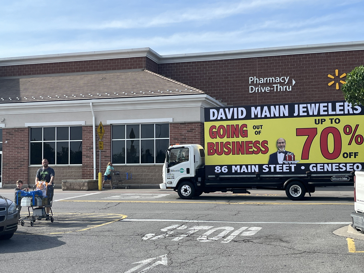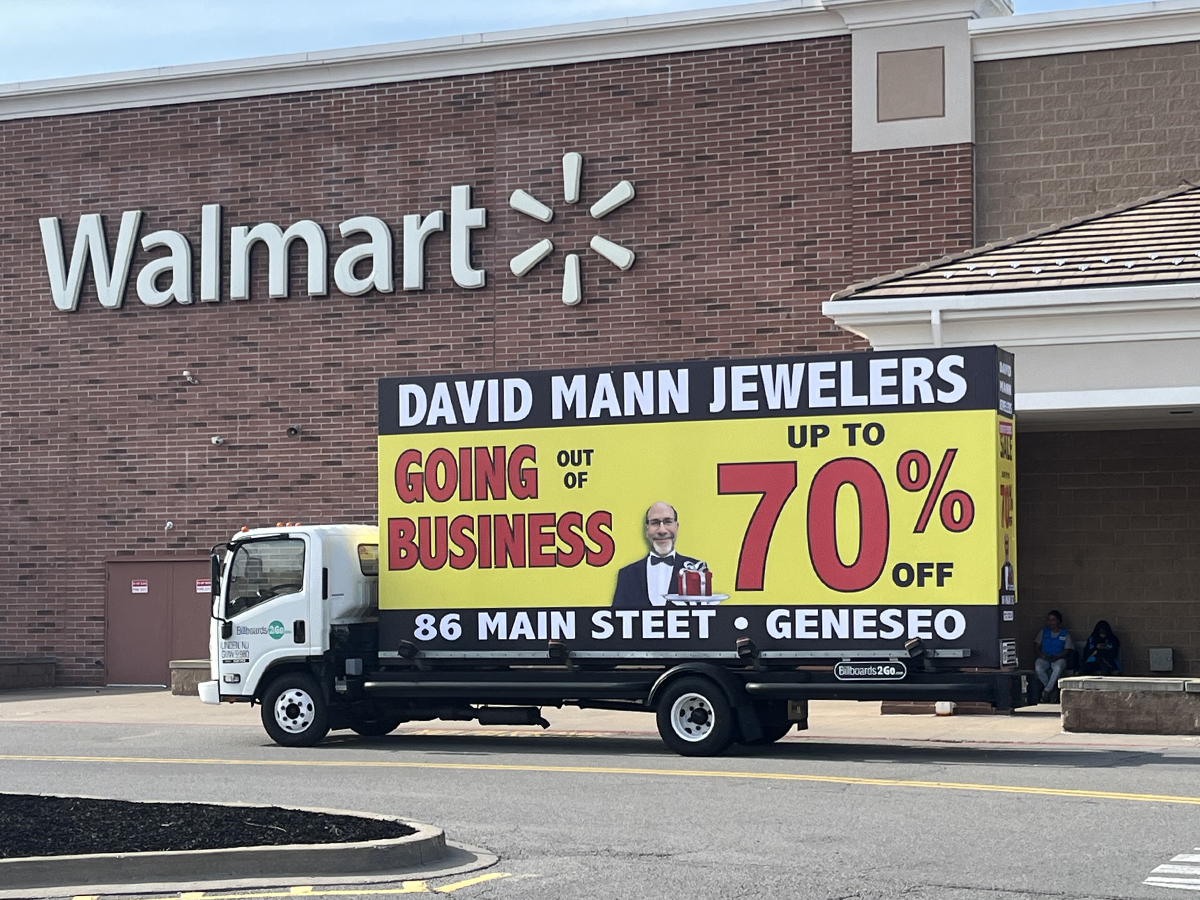 NOTE: 05/23/24 Below is a photo to give you a glimpse of the client’s store in Geneseo to confirm we are representing the correct client. The David Mann Jeweler’s mobile billboard campaign is all set to launch this Memorial Day morning, May 27th. Our billboard unit will be traveling to the area this weekend. The banners will be posted when the billboard unit arrives, so there are no photos to show at this time. We’ll share photos as soon as they’re available! Russell Miller will be on hand to introduce the driver the the store manager and go over any details.