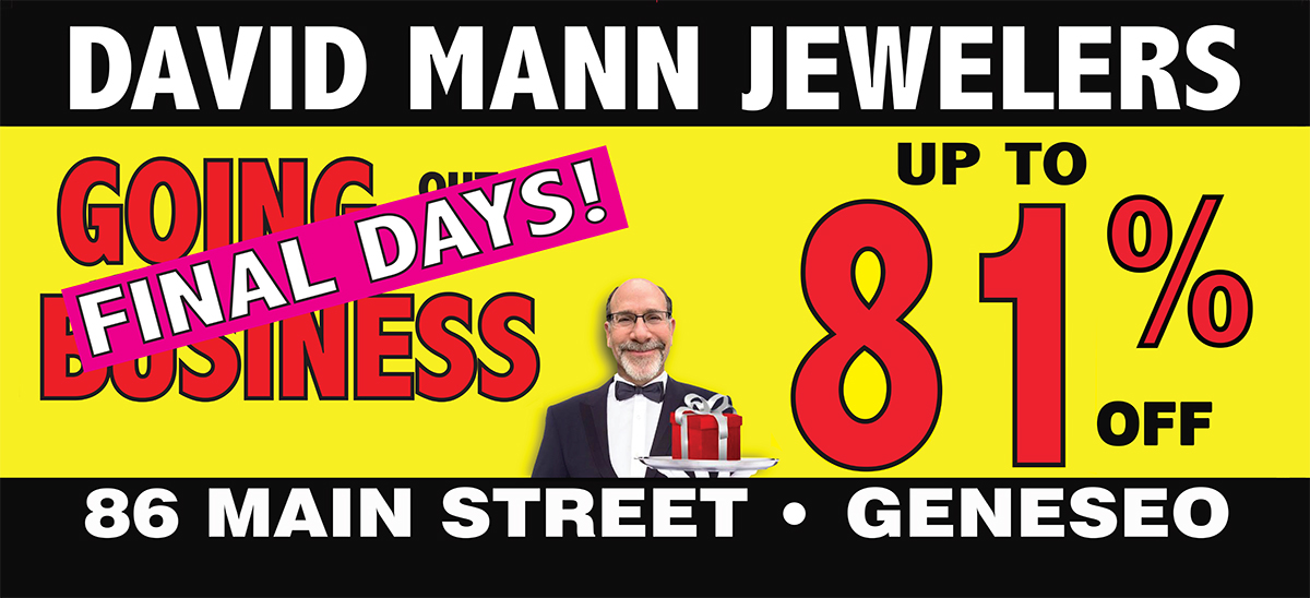 NOTE: 06/05/24 The David Mann Jewelry Sale will have a final banner change scheduled for June 24th. The previous artwork had a typo in the address – it read “STEET” instead of “STREET.” We’ve corrected the typo that was sent with the new art, and a sample of the updated art is shown below. Interestingly, no one (including us) noticed the typo on the first banner. Now that we received the artwork again with the same typo, we took the opportunity to fix it. Funny how typos can sneak by everyone, right? At least “STEET” isn’t too noticeable.