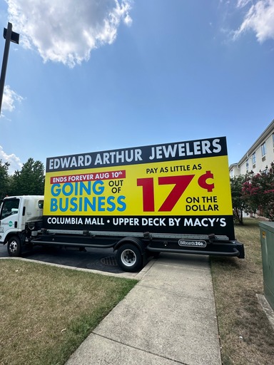 NOTE: 06/10/24 Below is a photo to give you a glimpse of the client’s store in Columbia MD to confirm we are representing the correct client. The store is located inside The Mall in Columbia. The Edward Arthur Jewelers mobile billboard campaign is scheduled to launch on Tuesday, June 18th. We’ll share photos as soon as they’re available!