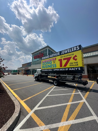 NOTE: 06/17/24 Below is a photo taken at the Linden NJ depot showing the Edward Arthur Jewelers mobile billboard unit being prepared for the new campaign in Columbia MD. We are on schedule to launch tomorrow morning.
